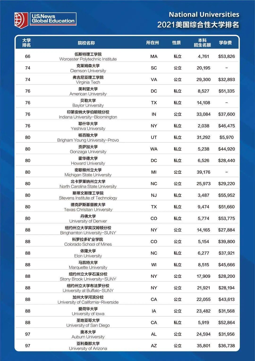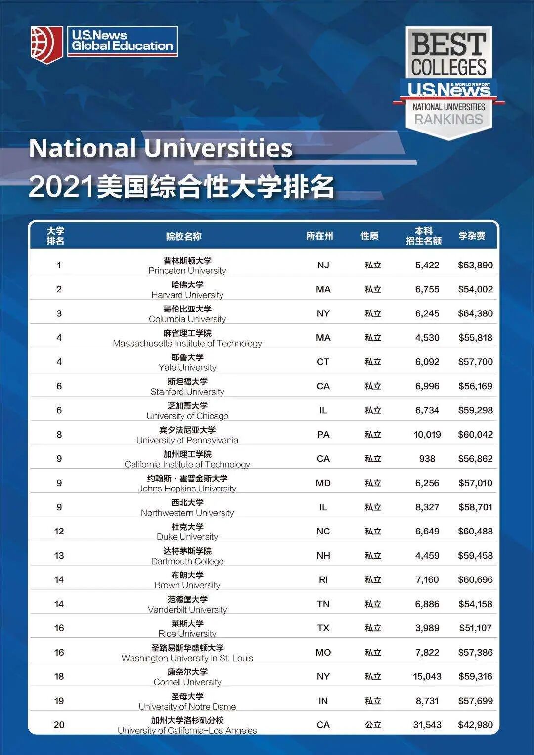 美国时间9月13日,世界最权威排名机构之一 U.S. News & World Report 《美国新闻与世界报道》(以下简称U.S. News)官方最新发布了2021年美国大学排名(2021 Best College Rankings)。