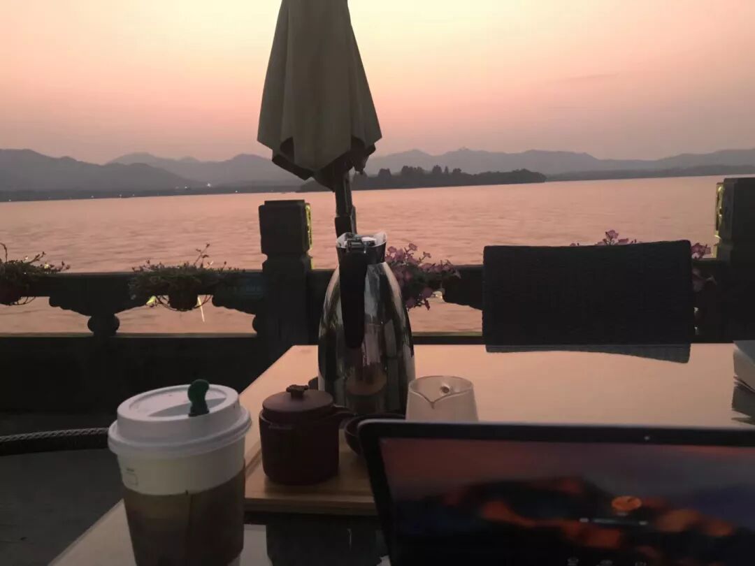在西湖边找灵感写ps | C同学(摄)